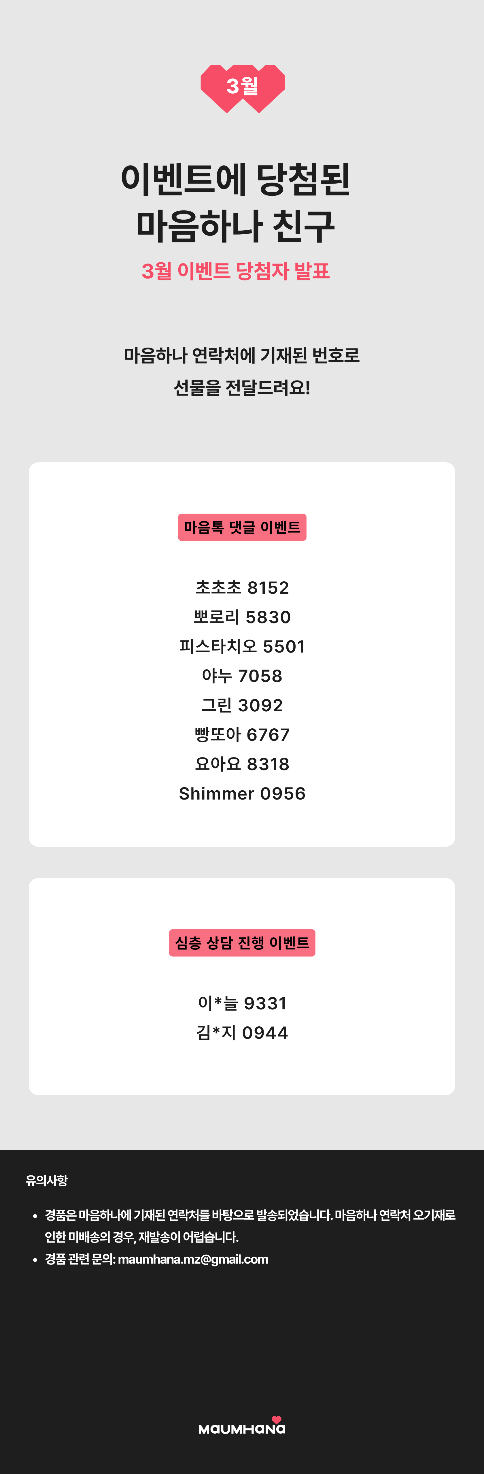 이벤트에 당첨된 마음하나 친구들 💖