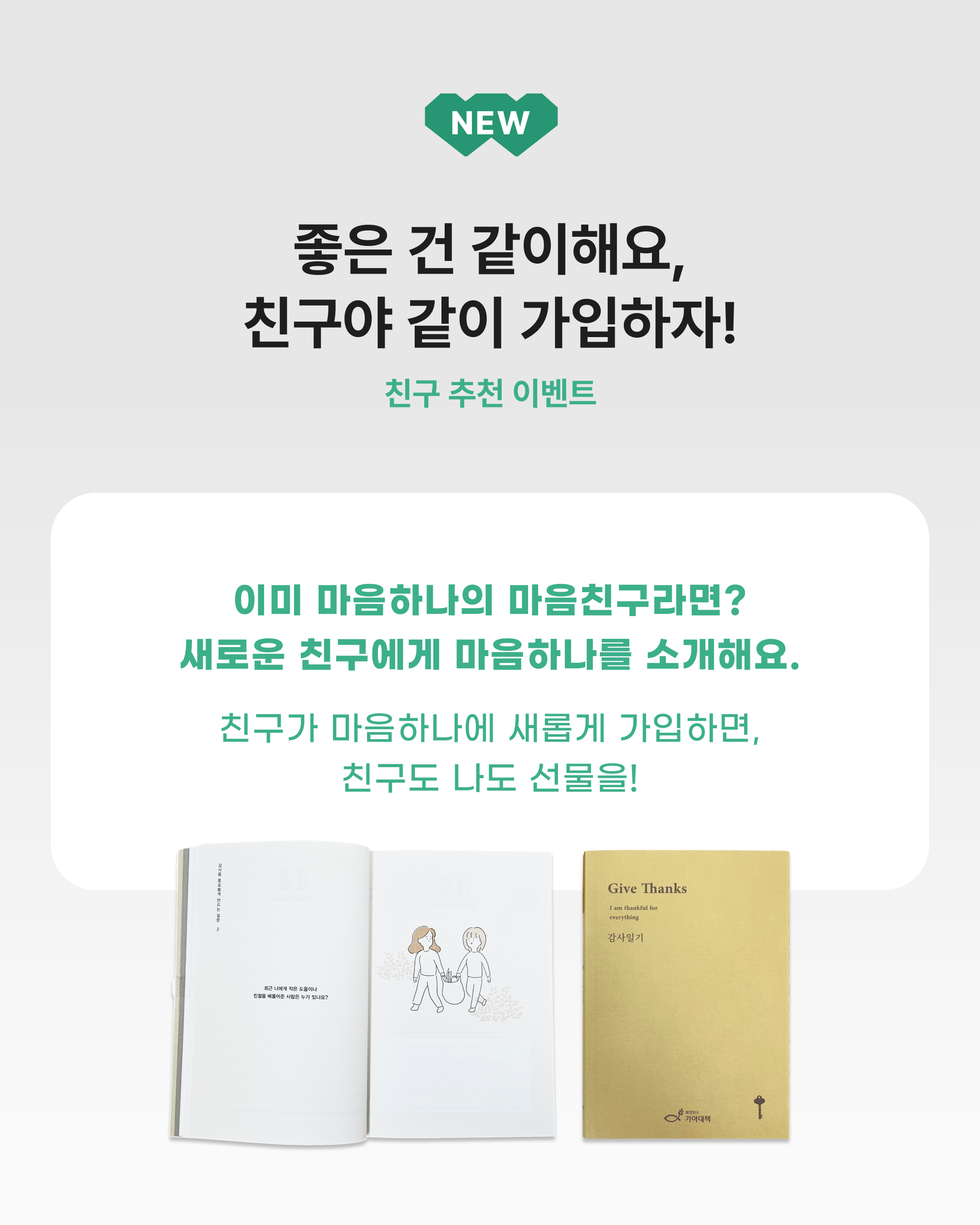 참여 방법 :  1. 친구에게 마음하나를 추천하고 가입을 유도해요.