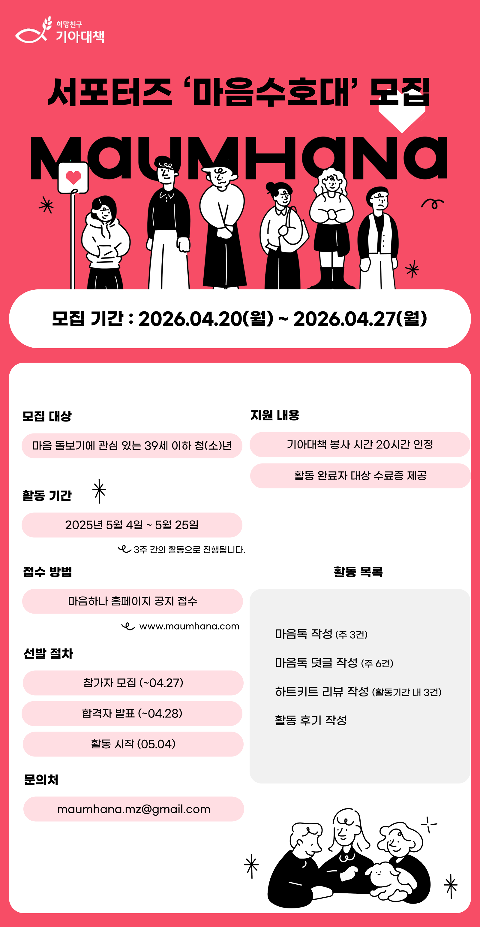 마음하나 서포터즈 '마음수호대' 모집 (25.04.20~25.04.27)